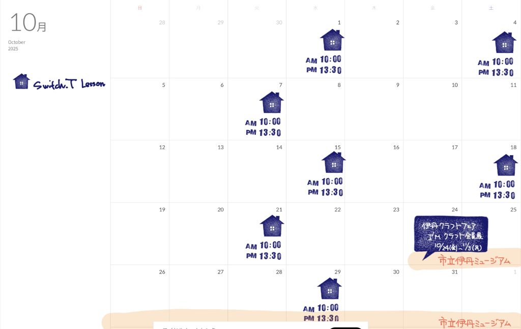 10月大変遅くなりましたが、教室予定のお知らせをさせていただきます。